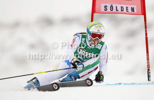 : Sabrina Fanchini of Italy skiing in first run of women giant slalom race of Audi FIS Alpine skiing World cup 2012-2013 in Soelden, Austria. First women giant slalom race of Audi FIS Alpine skiing World cup was held on Rettenbach glacier above Soelden, Austria, on Saturday, 27th of October 2012.