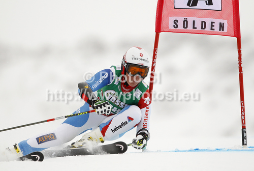 : Corinne Suter of Switzerland skiing in first run of women giant slalom race of Audi FIS Alpine skiing World cup 2012-2013 in Soelden, Austria. First women giant slalom race of Audi FIS Alpine skiing World cup was held on Rettenbach glacier above Soelden, Austria, on Saturday, 27th of October 2012.