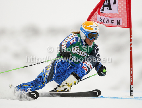: Magdalena Fjaellstroem of Sweden skiing in first run of women giant slalom race of Audi FIS Alpine skiing World cup 2012-2013 in Soelden, Austria. First women giant slalom race of Audi FIS Alpine skiing World cup was held on Rettenbach glacier above Soelden, Austria, on Saturday, 27th of October 2012.