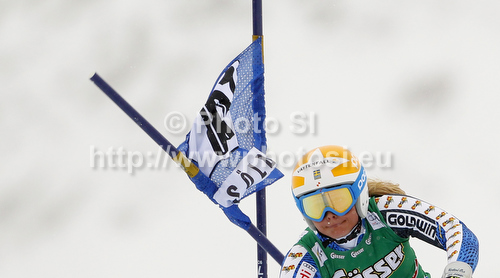: Anna Swenn-Larsson of Sweden skiing in first run of women giant slalom race of Audi FIS Alpine skiing World cup 2012-2013 in Soelden, Austria. First women giant slalom race of Audi FIS Alpine skiing World cup was held on Rettenbach glacier above Soelden, Austria, on Saturday, 27th of October 2012.