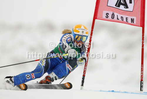 : Anna Swenn-Larsson of Sweden skiing in first run of women giant slalom race of Audi FIS Alpine skiing World cup 2012-2013 in Soelden, Austria. First women giant slalom race of Audi FIS Alpine skiing World cup was held on Rettenbach glacier above Soelden, Austria, on Saturday, 27th of October 2012.