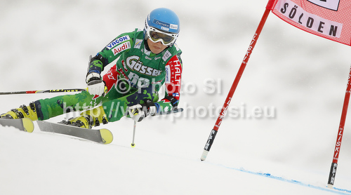 : Merle Soppela of Finland skiing in first run of women giant slalom race of Audi FIS Alpine skiing World cup 2012-2013 in Soelden, Austria. First women giant slalom race of Audi FIS Alpine skiing World cup was held on Rettenbach glacier above Soelden, Austria, on Saturday, 27th of October 2012.