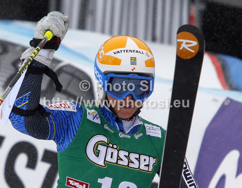 : Jessica Lindell-Vikarby of Sweden reacts in finish of second run of women giant slalom race of Audi FIS Alpine skiing World cup 2012-2013 in Soelden, Austria. First women giant slalom race of Audi FIS Alpine skiing World cup was held on Rettenbach glacier above Soelden, Austria, on Saturday, 27th of October 2012.