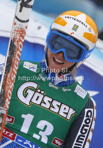 : Jessica Lindell-Vikarby of Sweden reacts in finish of second run of women giant slalom race of Audi FIS Alpine skiing World cup 2012-2013 in Soelden, Austria. First women giant slalom race of Audi FIS Alpine skiing World cup was held on Rettenbach glacier above Soelden, Austria, on Saturday, 27th of October 2012.