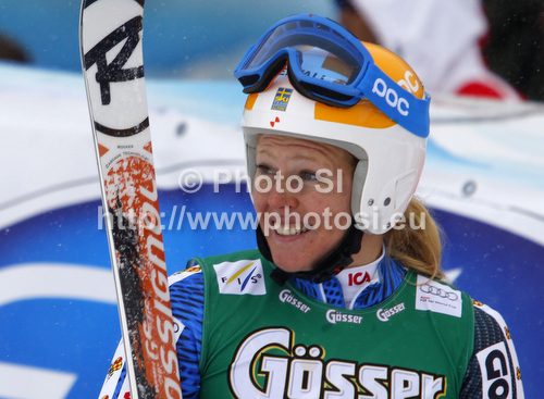 : Jessica Lindell-Vikarby of Sweden reacts in finish of second run of women giant slalom race of Audi FIS Alpine skiing World cup 2012-2013 in Soelden, Austria. First women giant slalom race of Audi FIS Alpine skiing World cup was held on Rettenbach glacier above Soelden, Austria, on Saturday, 27th of October 2012.