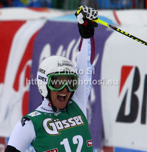 : Third placed Stefanie Koehle of Austria reacts in finish of second run of women giant slalom race of Audi FIS Alpine skiing World cup 2012-2013 in Soelden, Austria. First women giant slalom race of Audi FIS Alpine skiing World cup was held on Rettenbach glacier above Soelden, Austria, on Saturday, 27th of October 2012.