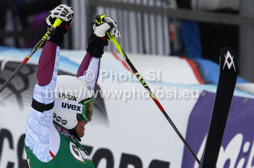 : Third placed Stefanie Koehle of Austria reacts in finish of second run of women giant slalom race of Audi FIS Alpine skiing World cup 2012-2013 in Soelden, Austria. First women giant slalom race of Audi FIS Alpine skiing World cup was held on Rettenbach glacier above Soelden, Austria, on Saturday, 27th of October 2012.