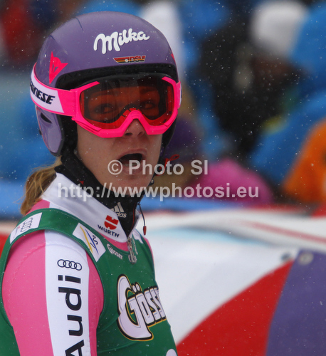 : Maria Hoefl-Riesch of Germany exhausted and disappointed in finish of second run of women giant slalom race of Audi FIS Alpine skiing World cup 2012-2013 in Soelden, Austria. First women giant slalom race of Audi FIS Alpine skiing World cup was held on Rettenbach glacier above Soelden, Austria, on Saturday, 27th of October 2012.