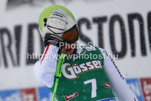 : Fifth placed Anna Fenninger of Austria reacts in finish of second run of women giant slalom race of Audi FIS Alpine skiing World cup 2012-2013 in Soelden, Austria. First women giant slalom race of Audi FIS Alpine skiing World cup was held on Rettenbach glacier above Soelden, Austria, on Saturday, 27th of October 2012.
