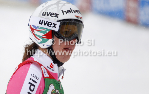 : Viktoria Rebensburg of Germany disappointed after DNF in finish of second run of women giant slalom race of Audi FIS Alpine skiing World cup 2012-2013 in Soelden, Austria. First women giant slalom race of Audi FIS Alpine skiing World cup was held on Rettenbach glacier above Soelden, Austria, on Saturday, 27th of October 2012.