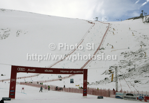 : Sšlden Rettenbacher, race course of women giant slalom race of Audi FIS Alpine skiing World cup 2012-2013 in Soelden, Austria. First women giant slalom race of Audi FIS Alpine skiing World cup was held on Rettenbach glacier above Soelden, Austria, on Saturday, 27th of October 2012.