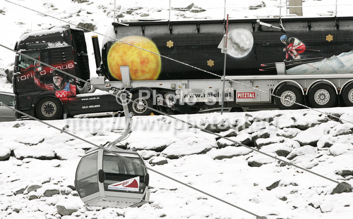 : Benny Raich truck women giant slalom race of Audi FIS Alpine skiing World cup 2012-2013 in Soelden, Austria. First women giant slalom race of Audi FIS Alpine skiing World cup was held on Rettenbach glacier above Soelden, Austria, on Saturday, 27th of October 2012.