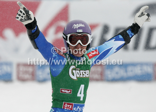 : Tina Maze of Slovenia reacts in finish of second run of women giant slalom race of Audi FIS Alpine skiing World cup 2012-2013 in Soelden, Austria. First women giant slalom race of Audi FIS Alpine skiing World cup was held on Rettenbach glacier above Soelden, Austria, on Saturday, 27th of October 2012.