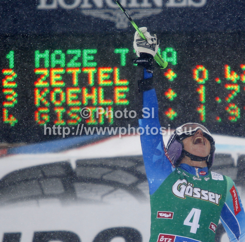: Winner Tina Maze of Slovenia reacts in finish of second run of women giant slalom race of Audi FIS Alpine skiing World cup 2012-2013 in Soelden, Austria. First women giant slalom race of Audi FIS Alpine skiing World cup was held on Rettenbach glacier above Soelden, Austria, on Saturday, 27th of October 2012.