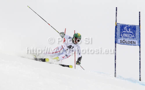 : Philipp Schoerghofer of Austria skiing in first run of men giant slalom race of Audi FIS Alpine skiing World cup 2012-2013 in Soelden, Austria. First men giant slalom race of Audi FIS Alpine skiing World cup was held on Rettenbach glacier above Soelden, Austria, on Sunday, 28th of October 2012.