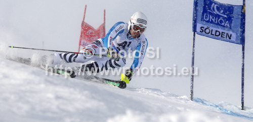 : Fritz Dopfer of Germany skiing in first run of men giant slalom race of Audi FIS Alpine skiing World cup 2012-2013 in Soelden, Austria. First men giant slalom race of Audi FIS Alpine skiing World cup was held on Rettenbach glacier above Soelden, Austria, on Sunday, 28th of October 2012.