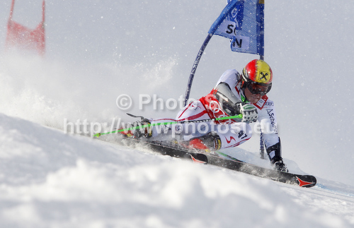 : Marcel Hirscher of Austria skiing in first run of men giant slalom race of Audi FIS Alpine skiing World cup 2012-2013 in Soelden, Austria. First men giant slalom race of Audi FIS Alpine skiing World cup was held on Rettenbach glacier above Soelden, Austria, on Sunday, 28th of October 2012.