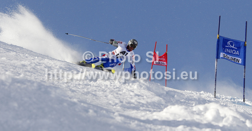 : Thomas Fanara of France skiing in first run of men giant slalom race of Audi FIS Alpine skiing World cup 2012-2013 in Soelden, Austria. First men giant slalom race of Audi FIS Alpine skiing World cup was held on Rettenbach glacier above Soelden, Austria, on Sunday, 28th of October 2012.