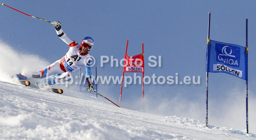 : Didier Defago of Switzerland skiing in first run of men giant slalom race of Audi FIS Alpine skiing World cup 2012-2013 in Soelden, Austria. First men giant slalom race of Audi FIS Alpine skiing World cup was held on Rettenbach glacier above Soelden, Austria, on Sunday, 28th of October 2012.