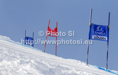 : Course of the first run of men giant slalom race of Audi FIS Alpine skiing World cup 2012-2013 in Soelden, Austria. First men giant slalom race of Audi FIS Alpine skiing World cup was held on Rettenbach glacier above Soelden, Austria, on Sunday, 28th of October 2012.