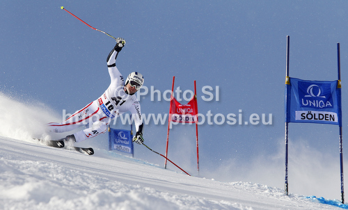 : Romed Baumann of Austria skiing in first run of men giant slalom race of Audi FIS Alpine skiing World cup 2012-2013 in Soelden, Austria. First men giant slalom race of Audi FIS Alpine skiing World cup was held on Rettenbach glacier above Soelden, Austria, on Sunday, 28th of October 2012.