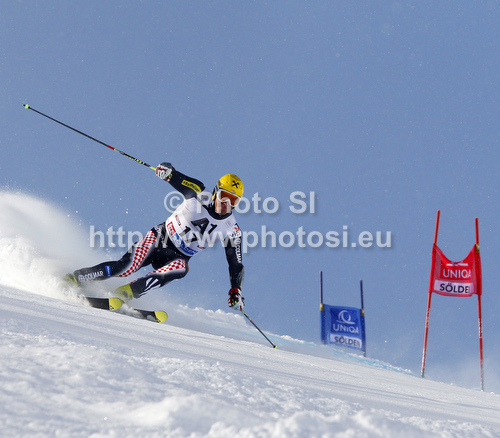 : Ivica Kostelic of Croatia skiing in first run of men giant slalom race of Audi FIS Alpine skiing World cup 2012-2013 in Soelden, Austria. First men giant slalom race of Audi FIS Alpine skiing World cup was held on Rettenbach glacier above Soelden, Austria, on Sunday, 28th of October 2012.