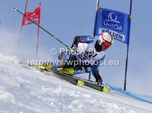 : Tim Jitloff of USA skiing in first run of men giant slalom race of Audi FIS Alpine skiing World cup 2012-2013 in Soelden, Austria. First men giant slalom race of Audi FIS Alpine skiing World cup was held on Rettenbach glacier above Soelden, Austria, on Sunday, 28th of October 2012.