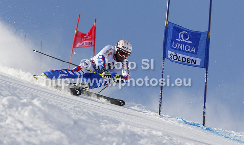: Gauthier De Tessieres of France skiing in first run of men giant slalom race of Audi FIS Alpine skiing World cup 2012-2013 in Soelden, Austria. First men giant slalom race of Audi FIS Alpine skiing World cup was held on Rettenbach glacier above Soelden, Austria, on Sunday, 28th of October 2012.