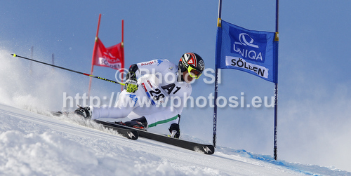 : Florian Eisath of Italy skiing in first run of men giant slalom race of Audi FIS Alpine skiing World cup 2012-2013 in Soelden, Austria. First men giant slalom race of Audi FIS Alpine skiing World cup was held on Rettenbach glacier above Soelden, Austria, on Sunday, 28th of October 2012.