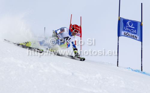 : Janez Jazbec of Slovenia skiing in first run of men giant slalom race of Audi FIS Alpine skiing World cup 2012-2013 in Soelden, Austria. First men giant slalom race of Audi FIS Alpine skiing World cup was held on Rettenbach glacier above Soelden, Austria, on Sunday, 28th of October 2012.