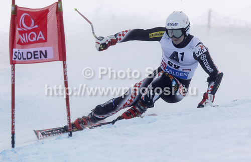 : Filip Zubcic of Croatia skiing in first run of men giant slalom race of Audi FIS Alpine skiing World cup 2012-2013 in Soelden, Austria. First men giant slalom race of Audi FIS Alpine skiing World cup was held on Rettenbach glacier above Soelden, Austria, on Sunday, 28th of October 2012.