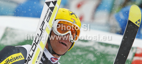 : Ivica Kostelic of Croatia reacts in finish of second run of men giant slalom race of Audi FIS Alpine skiing World cup 2012-2013 in Soelden, Austria. First men giant slalom race of Audi FIS Alpine skiing World cup was held on Rettenbach glacier above Soelden, Austria, on Sunday, 28th of October 2012.