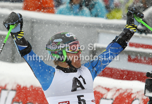: Winner Ted Ligety of USA reacts in finish of second run of men giant slalom race of Audi FIS Alpine skiing World cup 2012-2013 in Soelden, Austria. First men giant slalom race of Audi FIS Alpine skiing World cup was held on Rettenbach glacier above Soelden, Austria, on Sunday, 28th of October 2012.
