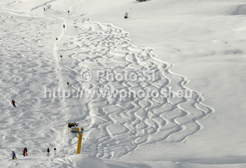 : Snowy slopes of Rettenbach glacier. First men giant slalom race of Audi FIS Alpine skiing World cup was held on Rettenbach glacier above Soelden, Austria, on Sunday, 28th of October 2012.