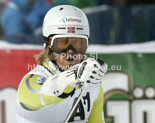 : Leif Kristian Haugen of Norway reacts in finish of first run of men giant slalom race of Audi FIS Alpine skiing World cup 2012-2013 in Soelden, Austria. First men giant slalom race of Audi FIS Alpine skiing World cup was held on Rettenbach glacier above Soelden, Austria, on Sunday, 28th of October 2012.