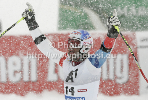 : Fifth placed Didier Defago of Switzerland reacts in finish of second run of men giant slalom race of Audi FIS Alpine skiing World cup 2012-2013 in Soelden, Austria. First men giant slalom race of Audi FIS Alpine skiing World cup was held on Rettenbach glacier above Soelden, Austria, on Sunday, 28th of October 2012.