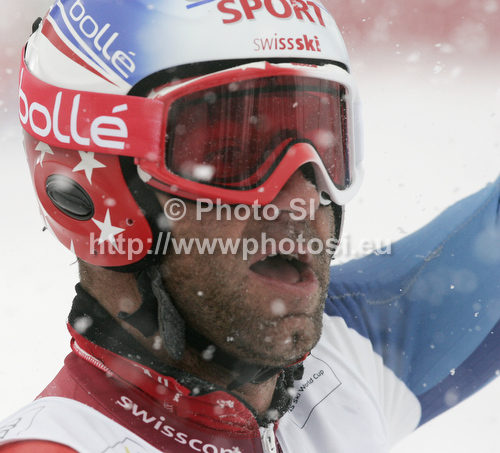 : Fifth placed Didier Defago of Switzerland reacts in finish of second run of men giant slalom race of Audi FIS Alpine skiing World cup 2012-2013 in Soelden, Austria. First men giant slalom race of Audi FIS Alpine skiing World cup was held on Rettenbach glacier above Soelden, Austria, on Sunday, 28th of October 2012.