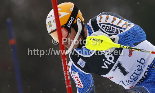 : Andre Myhrer of Sweden skiing in first run of men slalom Snow Queen Trophy race of Audi FIS Alpine skiing World cup 2012-2013 on Sljeme above Zagreb, Croatia. Men slalom Snow Queen Trophy race of Audi FIS Alpine skiing World cup was held on Sljeme above Zagreb, Croatia, on Sunday, 6th of January 2013.