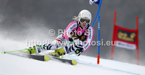: Simona Hoesl of Germany skiing in first run of women giant slalom Golden Fox trophy race of Audi FIS Alpine skiing World cup 2012-2013 in Maribor, Slovenia. Women giant slalom race of Audi FIS Alpine skiing World cup was held in Maribor, Slovenia, on Saturday, 26th of January 2013.