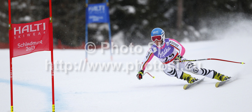 : Veronique Hronek of Germany skiing in women Super-g race of FIS Alpine skiing World Championships in Schladming, Austria. Women super-g race of FIS Alpine skiing World championships Schladming 2013, was held in Scladming, Austria, on Tuesday, 5th of February 2013.
