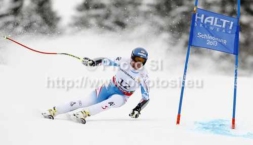 Schladming ,Austria - 06.02.2013 : Tenth placed Georg Streitberger of Austria skiing in men Super-g race of FIS Alpine skiing World Championships in Schladming, Austria. Men super-g race of FIS Alpine skiing World championships Schladming 2013, was held in Scladming, Austria, on Wednesday, 6th of February 2013. Photo by: Primoz Jeroncic