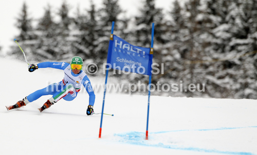 : Matteo Marsaglia of Italy skiing in men Super-g race of FIS Alpine skiing World Championships in Schladming, Austria. Men super-g race of FIS Alpine skiing World championships Schladming 2013, was held in Scladming, Austria, on Wednesday, 6th of February 2013.