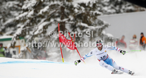 : Fourth placed Hannes Reichelt of Austria skiing in men Super-g race of FIS Alpine skiing World Championships in Schladming, Austria. Men super-g race of FIS Alpine skiing World championships Schladming 2013, was held in Scladming, Austria, on Wednesday, 6th of February 2013.