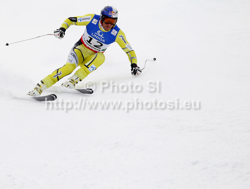 : Aksel Lund Svindal of Norway skiing in first training for men downhill race of FIS Alpine skiing World Championships in Schladming, Austria. First training for men downhill race of FIS Alpine skiing World championships Schladming 2013, was held in Schladming, Austria, on Thursday, 7th of February 2013.