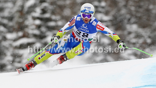: Rok Perko of Slovenia skiing in first training for men downhill race of FIS Alpine skiing World Championships in Schladming, Austria. First training for men downhill race of FIS Alpine skiing World championships Schladming 2013, was held in Schladming, Austria, on Thursday, 7th of February 2013.