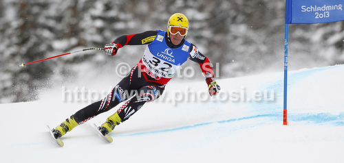 : Ivica Kostelic of Croatia skiing in first training for men downhill race of FIS Alpine skiing World Championships in Schladming, Austria. First training for men downhill race of FIS Alpine skiing World championships Schladming 2013, was held in Schladming, Austria, on Thursday, 7th of February 2013.