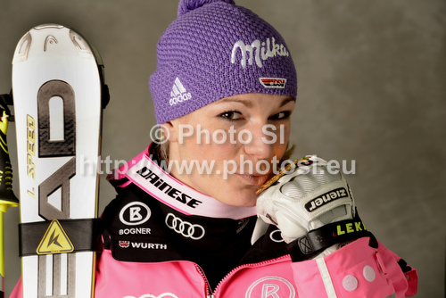 Schladming ,Austria - 08.02.2013 : Winner and new super combined World champions Maria Hoefl-Riesch of Germany celebrates her medal won in women super combined race of FIS Alpine skiing World Championships in Schladming, Austria. Women super combined race of FIS Alpine skiing World championships Schladming 2013, was held in Schladming, Austria, on Friday, 8th of February 2013. Photo by: Erich Spiess / pool / PhotoSI