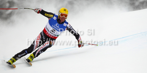 : Ivica Kostelic of Croatia skiing in men downhill race of FIS Alpine skiing World Championships in Schladming, Austria. Men downhill race of FIS Alpine skiing World championships Schladming 2013, was held in Schladming, Austria, on Saturday, 9th of February 2013.