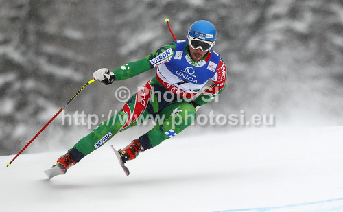 : Andreas Romar of Finland skiing in men downhill race of FIS Alpine skiing World Championships in Schladming, Austria. Men downhill race of FIS Alpine skiing World championships Schladming 2013, was held in Schladming, Austria, on Saturday, 9th of February 2013.