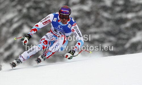 : Tenth placed Adrien Theaux of France skiing in men downhill race of FIS Alpine skiing World Championships in Schladming, Austria. Men downhill race of FIS Alpine skiing World championships Schladming 2013, was held in Schladming, Austria, on Saturday, 9th of February 2013.